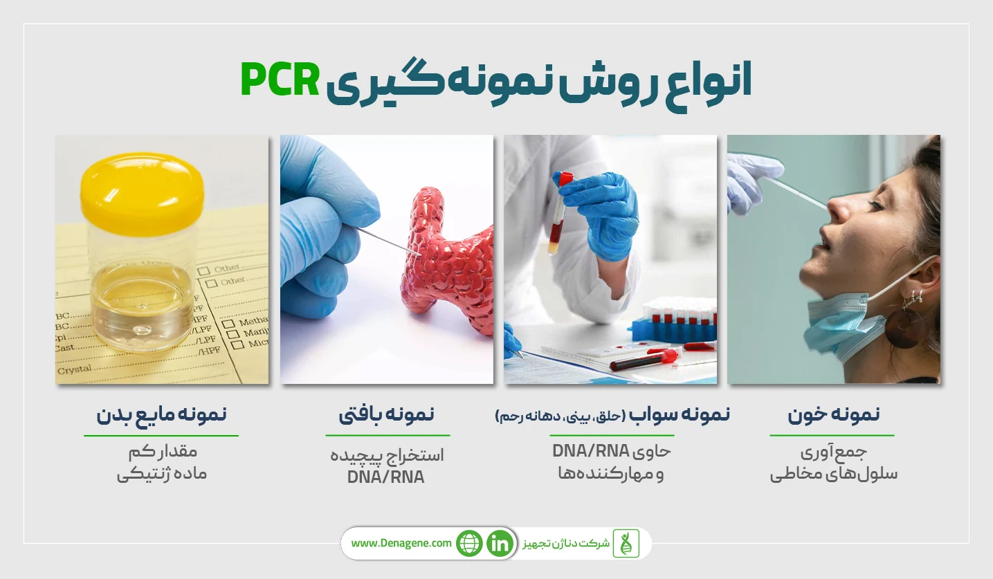 در تست PCR، نوع نمونهگیری و کیفیت نمونه از اهمیت بسیار بالایی برخوردار هستند، زیرا مقدار و کیفیت DNA/RNA موجود در نمونه، دقت و میزان اعتبار نتیجه PCR را تعیین میکند.